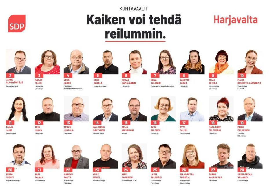 Harjavallan SDP, alue- ja kuntavaaliehdokkaat 2025
