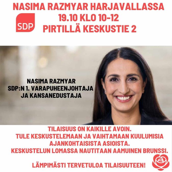 Nasima Razmyar Harjavallassa 19.10 klo 10-12 Tervetuloa Pirtille !
